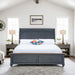 This King Size Bed boasts a refreshing coastal twist on traditional style. Skillfully crafted from Rubberwood Solids and Birch Veneers, the subtle distressing, Corduroy Blue finish and Antique Pewter hardware give this Bed an updated look with a timeless heirloom feel. Featuring a sleigh headboard with USB ports and a storage footboard, this King Size Bed will be a beautiful focal point for main or spare bedroom. Just like Baseball, Apple Pie and Rock & Roll, this storage bed will become a beloved favorite in your home. Minimal assembly is required to join the side rails to the headboard and footboard.
