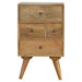 • This beautifully designed bedside is constructed from 100% solid mango wood and has fine, smooth oak-ish finish. Endlessly versatile, this bedside table makes a perfect stand for nibbles, drinks or a lamp. Useful storage space is available with 4 drawers and a decent sized top. Other features include Nordic style legs and shiny knobs for the drawers.