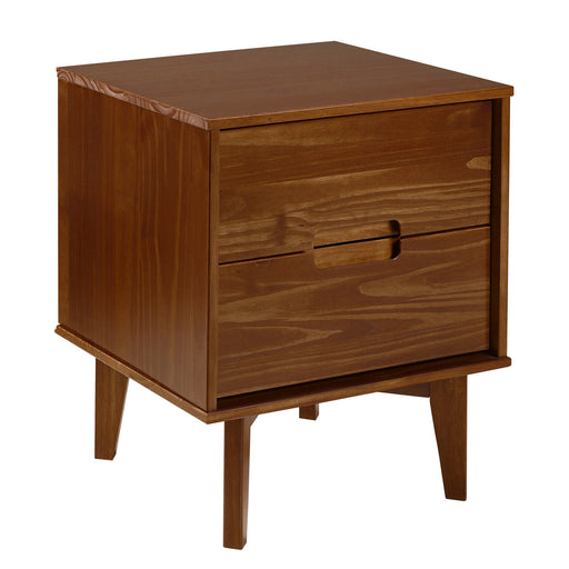 View full detailsMid-Century Modern 2-Drawer Solid Wood Nighstand with Cutout Handles - Caramel