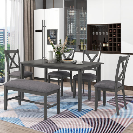 View full detailsTREXM 6-Piece Kitchen Dining Table Set Wooden Rectangular Dining Table, 4 Fabric Chairs and Bench Family Furniture (Gray)