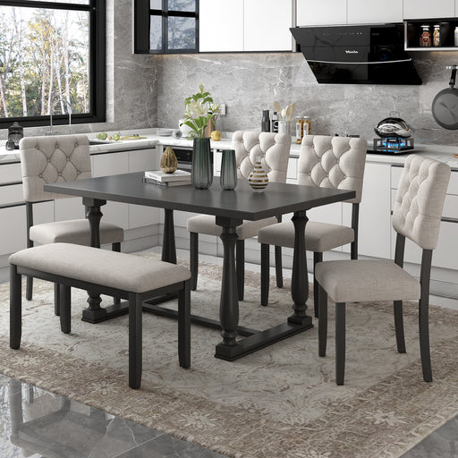 View full detailsTREXM 6-Piece Kitchen Dining Table Set Wooden Rectangular Dining Table, 4 Fabric Chairs and Bench Family Furniture (Espresso)