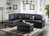 Built for function and style, this sleekly designed 3-piece sectional features units upholstered in rich hued faux leather and accent tufting with light stitching. If you like ultra contemporary décor, indulge with a sectional that suits your desires. It also includes a matching cocktail ottoman. Available in espresso or beige.