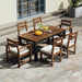 • 7-Piece Patio Table and Chairs Set: This set includes a large rectangular table, 2 Armchairs and 4 Side Chairs, comfortably seating up to six people. Crafted from high-quality, weather-resistant solid wood, this outdoor dining set is built to last. Ideal for family dinners, BBQs, or outdoor parties, it’s the perfect addition to your patio, deck, or garden. The timeless design blends seamlessly with any outdoor decor, creating a welcoming atmosphere for your guests.