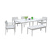 - Two-Tone Elegance: The table boasts a sleek rectangular top in a crisp Matte White finish, complemented by a modern Grayish frame. Chairs echo the Grayish frame with white canvas cushions that tie in beautifully with the table top.