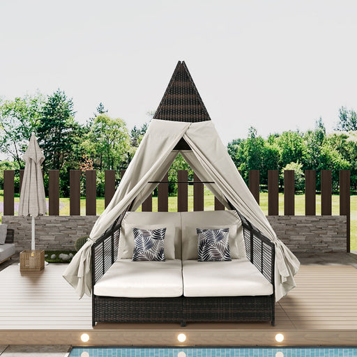 View full detailsOutdoor Daybed Patio Lounge Bed with Adjustable Backrest Outdoor Double Sun Lounger with Curtains, 4 Pillows for Garden Patio Poolside Balcony Beach, Beige