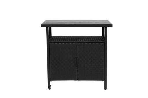 View full detailsOutdoor Wicker Bar Cart, Patio Wine Serving Cart w/Wheels , Rolling Rattan Beverage Bar Counter Table w/Glass Top for Porch Backyard Garden Poolside Party, Black