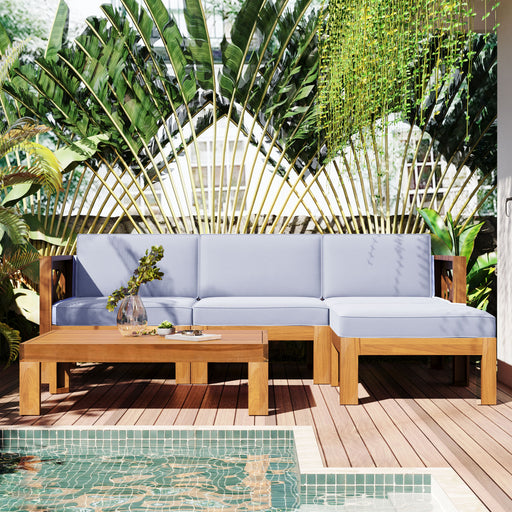 View full detailsTOPMAX Outdoor Backyard Patio Wood 5-Piece Sectional Sofa Seating Group Set with Cushions, Natural Finish+ Blue Cushions