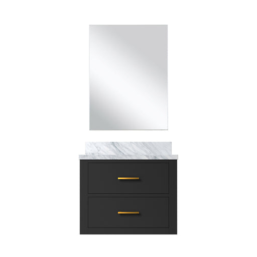 Black Single Bath Vanity 30 in. W x 22 in. D, Cultured Marble Countertop and 28 in. Mirror
