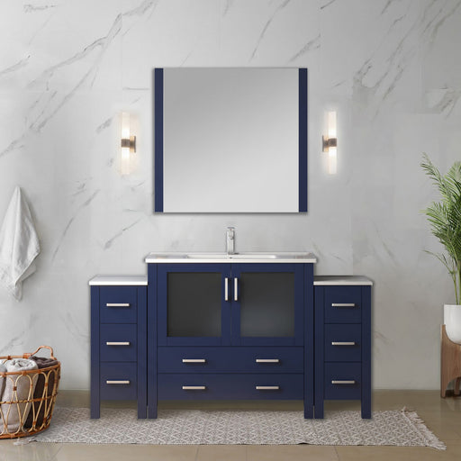 View full detailsNavy Blue Double Bath Vanity 60 in. W x 18.25 in. D, with Side Cabinet, White Ceramic Top, and 22 in. Mirrors