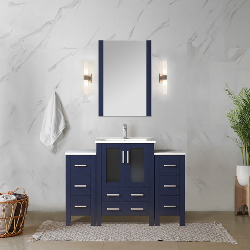 View full detailsNavy Blue Single Bath Vanity 48 in. W x 18.25 in. D, with Side Cabinets, White Ceramic Top, and Faucet Set